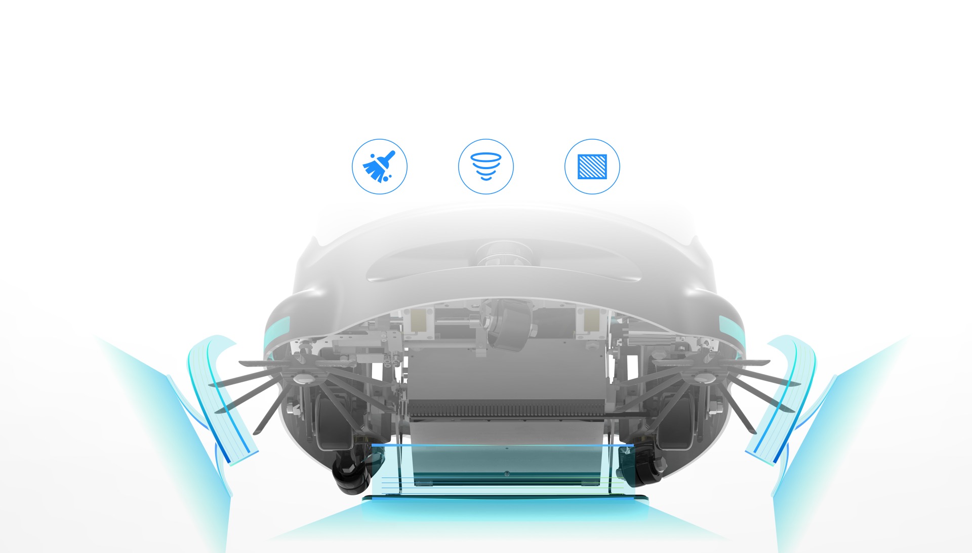 Sweep + vacuum + dust mop, without leaving traces.